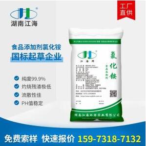 食品級氯化銨是江海公司潛心研究,在多年提純精制的經驗基礎上,通過特殊的結晶工藝精制而成,具有純度高、晶形規整、重金屬離子極低的特點,被廣泛的應用在酵母養料、面團改性、醬油催化、皮蛋上色、咸甘草糖制作等領域。同時近期發現在高品質獸藥中食品級氯化銨同樣能起到很好的作用。 產品包裝 內塑外編或按客戶要求 產品規格 25或50kg/袋 ...